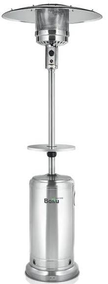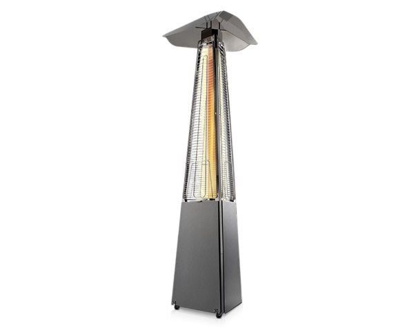 Äußerlich ähnelt das Design einem Pilz. Es besteht aus korrosionsbeständigem Metall. Standhöhe - 222 cm, Breite und Länge - 81,3 cm, Nettogewicht - 15 kg. Für eine bequeme Bewegung ist die Basis des Heizgeräts mit Rädern ausgestattet. Das Gerät arbeitet mit Flüssiggas. Die maximale Heizfläche beträgt 18 qm. Kraftstoffverbrauch - 0,95 kg / h. Zulässige Infrarot-Heizleistung - 13 kW.