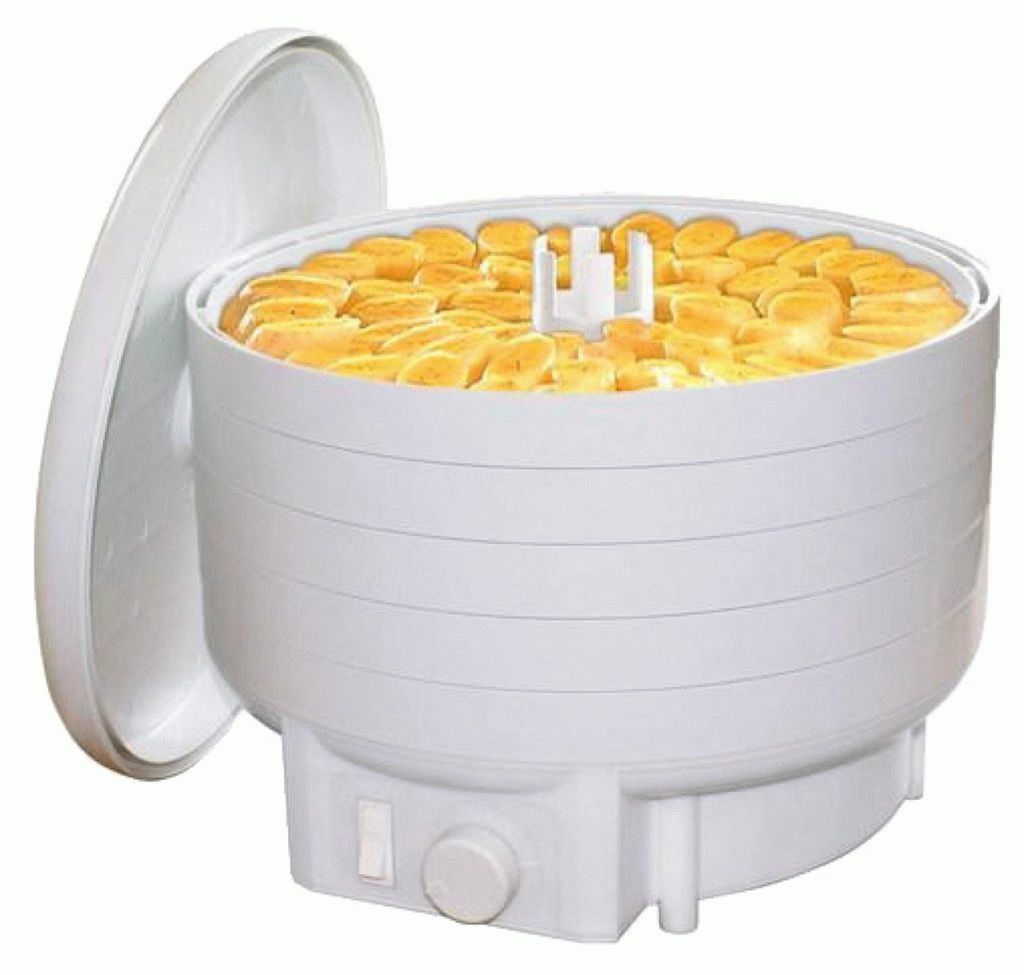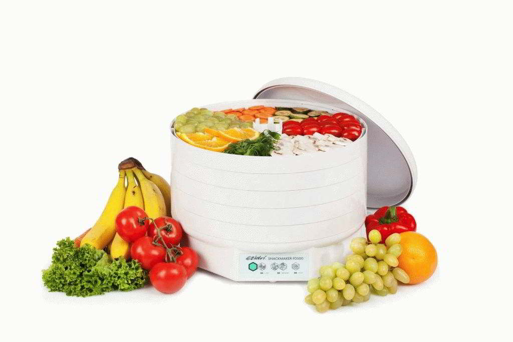 In der ersten Zeile der Bewertung haben wir das Modell Snackmaker FD500 der neuseeländischen Firma Ezidri platziert. Die Leistung dieses Geräts beträgt 500 Watt. Für einen Arbeitszyklus bewältigt dieser elektrische Trockner 7 kg Rohprodukt. Das reicht für eine durchschnittliche Familie völlig aus. Das Paket dieses Trockners umfasst eine Basis, die die Hauptfunktion der Heizung, Belüftung und Temperaturregelung erfüllt, 5 runde Tabletts, einen Kunststoffdeckel sowie 1 Tablett mit Gitter und 1 Tablett für Fruchtmarshmallow. Außerdem liegt dem Gerät eine Broschüre bei, die die Grundrezepte enthält.