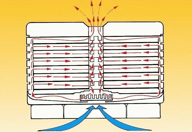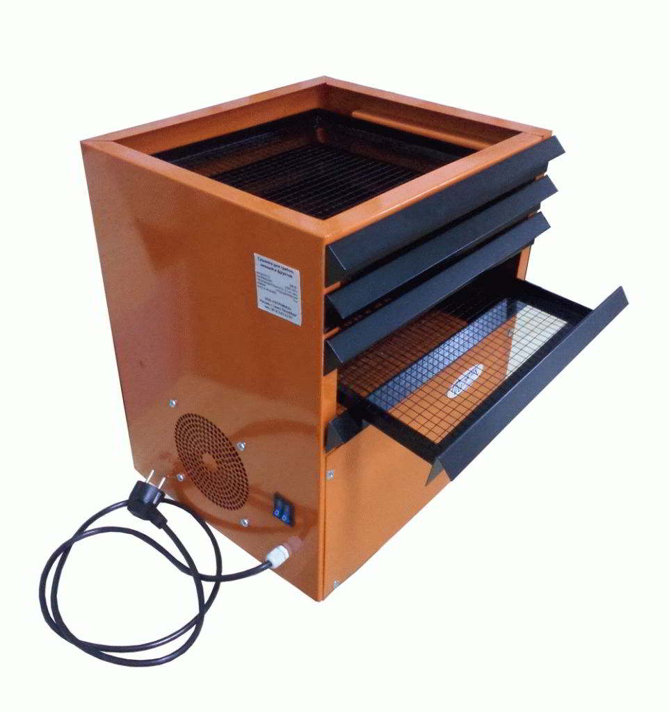 Die Hauptelemente – ein Ventilator und ein Heizelement – können unter oder neben der Trockenkammer angeordnet werden. Bei einem kleinen Gerät spielt dies keine Rolle, die Lüfter können sowohl horizontal als auch vertikal sein, aber bei einem größeren Trockner ist eine seitliche Anordnung besser, damit die Produkte gleichmäßig verarbeitet werden.