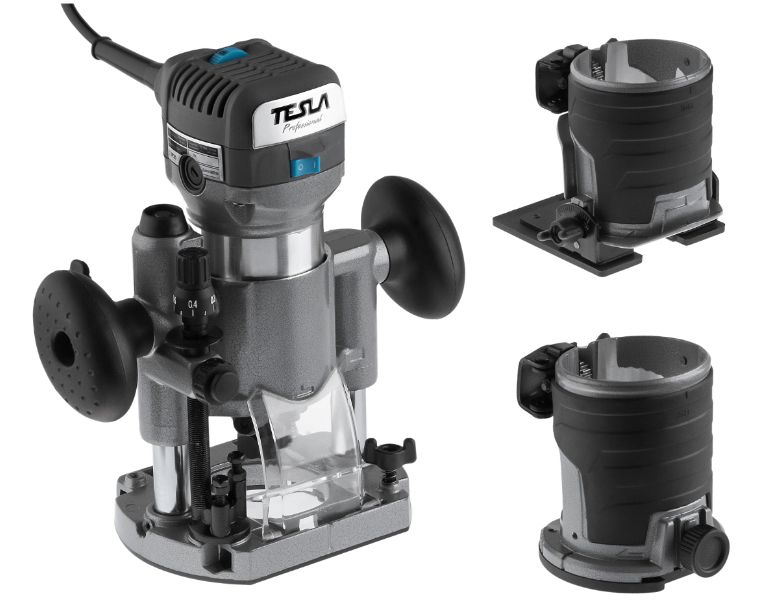 Dieses Modell ist bei Profis sehr beliebt.Sie hat sich als sehr zuverlässige und langlebige Maschine etabliert. Die Griffe sind für Benutzerkomfort gummiert. Gehäusematerial: strapazierfähiger Kunststoff, Plattformmaterial: Aluminium-Druckguss. Der Arbeitshub beträgt 35 mm, die Leistung liegt bei 900 W – also ziemlich durchschnittlich in Sachen Leistung. Das Gerät wiegt ziemlich viel, so dass es leicht zu tragen und zu lagern ist. Der Fräser wird bequem und präzise eingestellt, verschiedene Schablonen werden mitgeliefert.