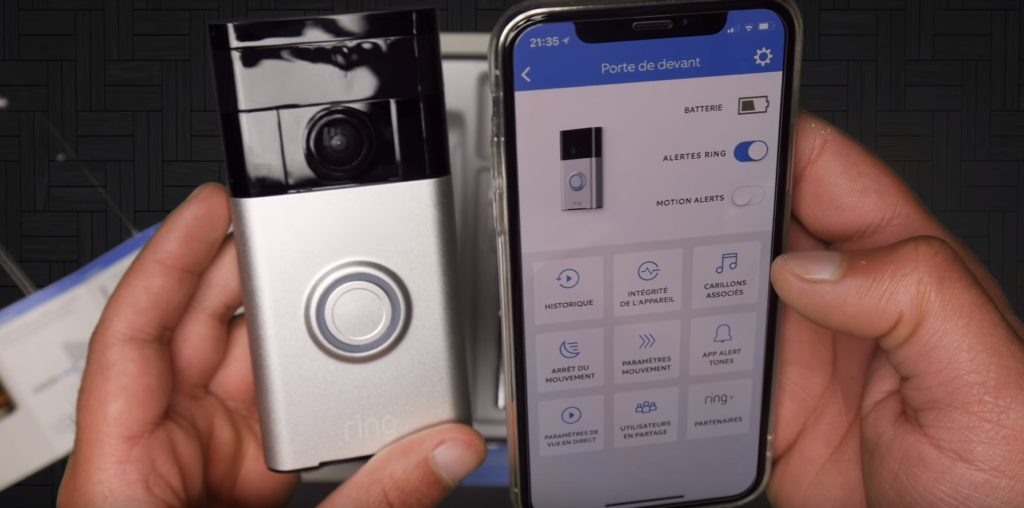 Il n'y a pas de récepteur inclus, car la Ring Video Doorbell communique directement avec le smartphone. Il y a une lumière infrarouge. Une batterie de 5200 mAh (un an d'autonomie) est insérée dans le boîtier. La charge prend 11 heures.