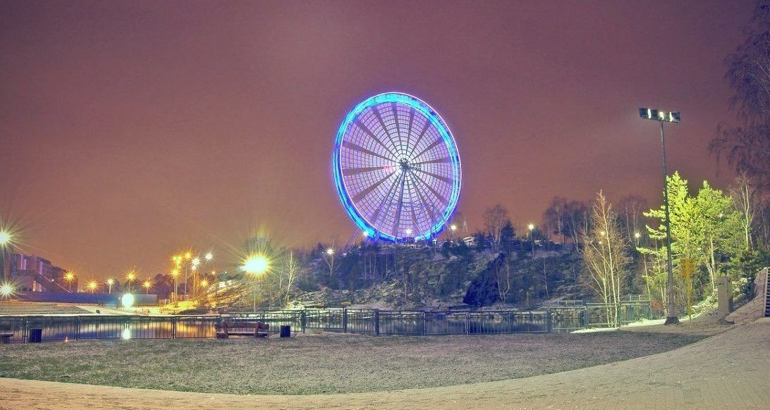 SEC "Rainbow Park" is located at st. Repina, 94, which is far from the city center. But, despite this, many residents take their children to rest here in winter and summer. In the open area near the center, a high (50 meters) Ferris wheel with closed cabins is installed. The illumination of the wheel in the dark is striking in its splendor. The wheel works all year round. Nearby is a beautiful natural reservoir.