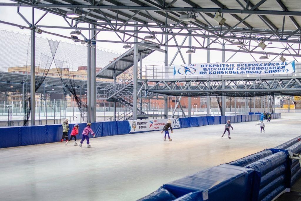 Until recently, this skating rink was filled with natural ice, now it is artificial. It is located in the Udelny Park at the Olympic Hopes stadium, not far from the Udelnaya and Pionerskaya metro stations. Beautiful forested area around. Speed skating training and competitions take place here, so the ice is always of excellent quality.