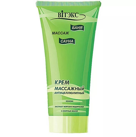 The Belarusian company Belita-Viteks offers its know-how in getting rid of cellulite, this is the cream “Bath, massage, sauna”. Sold in a green tube. Inside is a delicate texture with a pleasant fragrance. The composition of the product includes vegetable, essential oils, a component of brown algae, an extract from hot pepper, grapefruit extract and other useful substances. The shiny composition is great for domestic use. Before use, the manufacturer advises to cleanse the body with a scrub, rinse it off and warm the skin well with your palms. After that, you need to squeeze out a small amount of the product, hold it in your palms, thereby heating it, and then start rubbing it into problem areas, not forgetting about the massage. If you want to enhance the effect, then wrap your legs, smeared with cream, cling film and leave for 20 minutes. The warming effect is guaranteed.