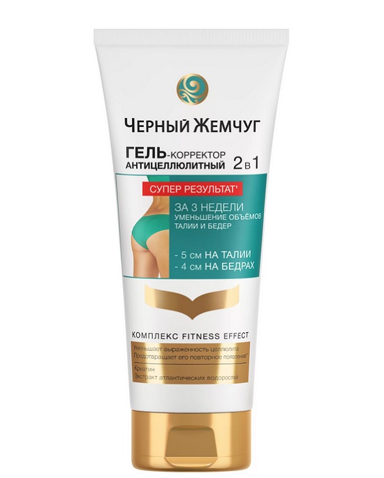 Anti-cellulite gel corrector Black Pearl 2in1 is popular with all lovers of domestic products. This cream-gel should be applied to problem areas with standard massaging movements and wait for complete absorption. During use, a pleasant and cooling effect is felt. The corrector gel is quite suitable for sensitive skin, as it does not cause discomfort. The manufacturer promises that the use of the product will increase skin tone, moisturize and nourish it, speed up the metabolism in cells and, most importantly, help to reduce volumes, nullifying the signs of cellulite. If you read the reviews of customers, then there is not such a rosy perception, but all the same, women note that, together with physical exercises, massage and proper nutrition, they see a result that pleases them.