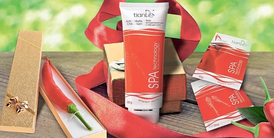 Many have heard about the amazing effect of pepper and are looking for products based on it. Having studied the available reviews, we recommend trying the Chinese cosmetology product SPA technology anti-cellulite cream with chili pepper from the TianDe brand. The main purpose of SPA technology is to break down fats and remove them from the body. Due to this, volumes should decrease, and the skin becomes smoother and velvety. The product has an orange color and a strong smell. The consistency is oily and creamy, but it absorbs well into the body. The company advises just applying it to the body, but the action is not felt like that, so it’s better to use a brush and massage the areas with cellulite well, and then apply a layer of cream on top and wrap it with cling film. The procedure can take from 40 minutes to 3 hours. At first, the burning sensation is not felt, and then it collapses with full power. But the work of pepper on the body is immediately felt.