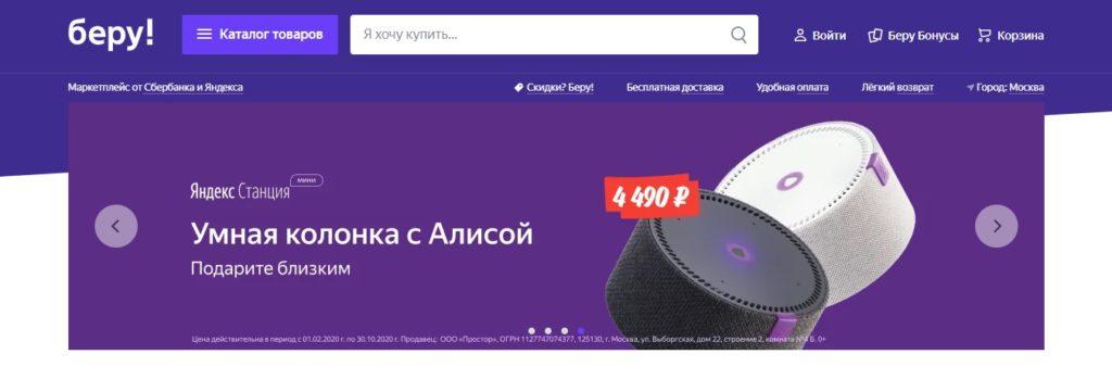 Joint marketplace of Sberbank and Yandex. This, first of all, speaks about the safety and quality of the service. The interface of the store itself is made in such a way as to simplify the “shopping” for customers as much as possible, so purchases are made quickly, without other problems.