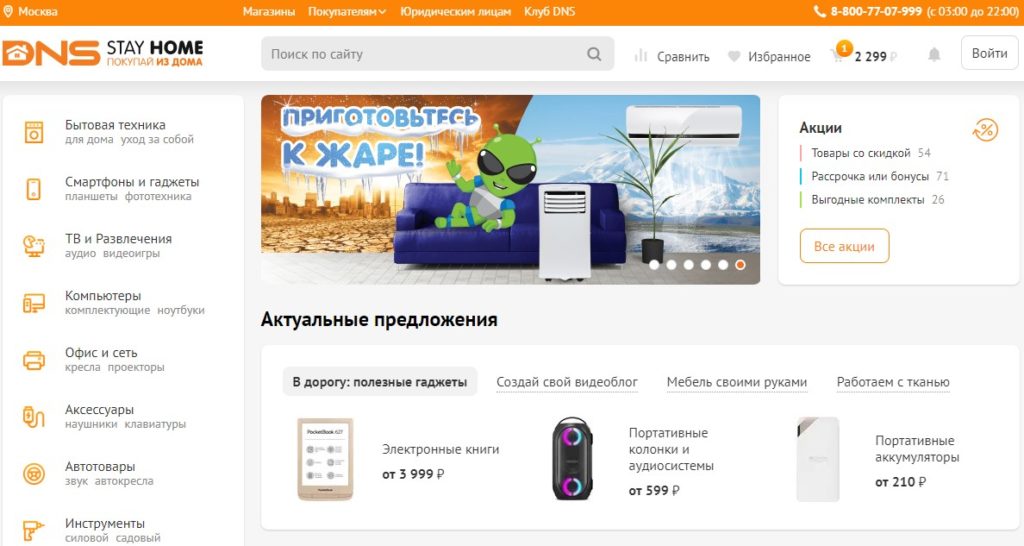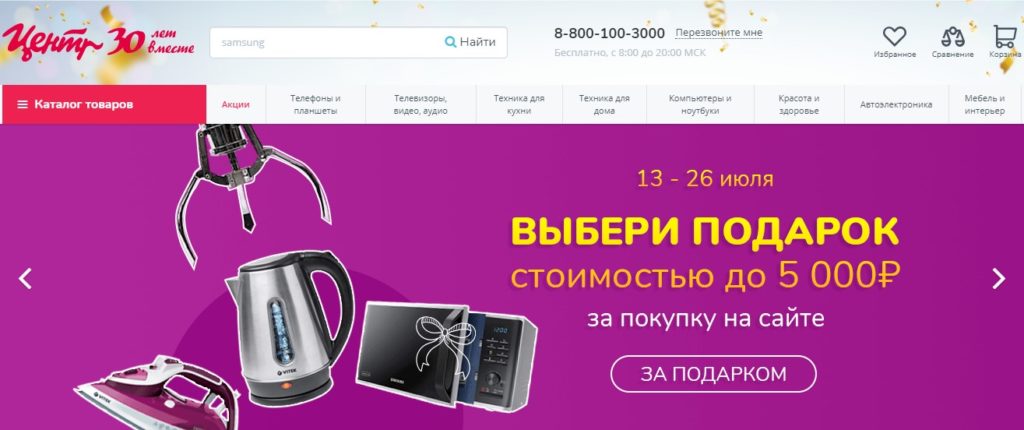 The store cooperates with many world and famous brands. Buyers are offered more than 70,000 items of various equipment, electrical appliances, and other goods.