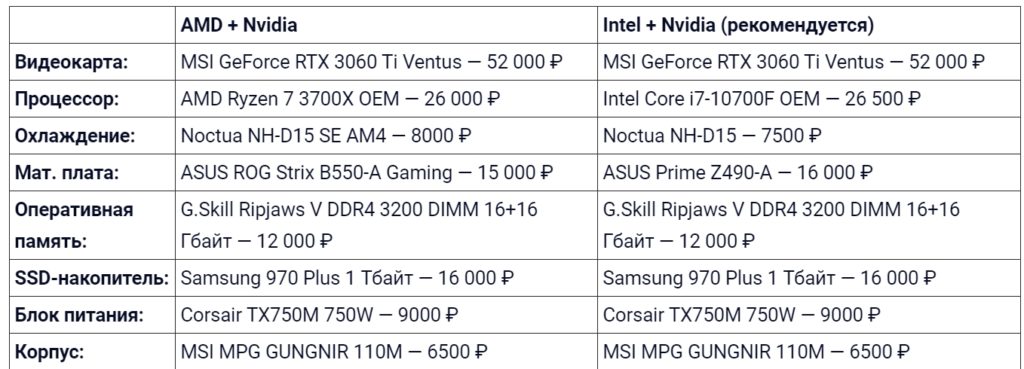 As a result, the average assembly price for Intel will cost 66,000 RUB, and for AMD, 65,500 RUB.