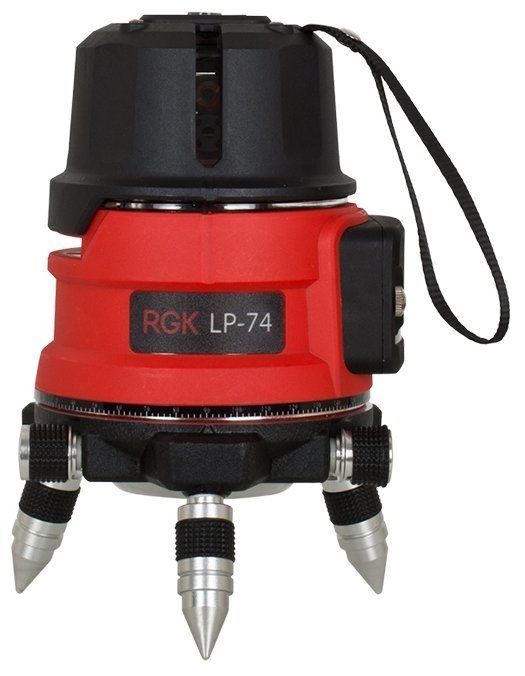 The laser level RGK LP-74 is made for installation, construction, finishing work outdoors and indoors. One plane vertically and four planes horizontally are projected by the leveling equipment for processing and analyzing the obtained measurements. The body of the device is very tight, which reliably protects electronic equipment from moisture and dust.
