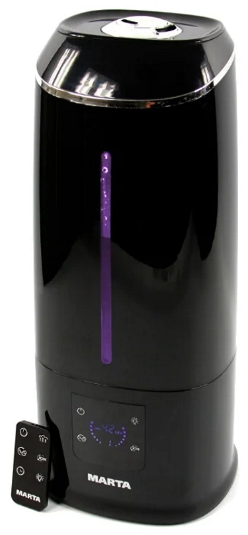 Economic product for humidification and purification of air with a large tank. The compact, streamlined black body fits well with any interior design. The built-in timer turns on the device at the right time, and the auto-off function provides protection against breakdowns. All settings are displayed on the display, which makes it easy and simple to control the humidifier.