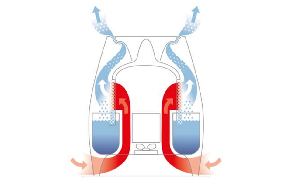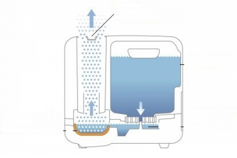 Humidification based on natural evaporation by "blowing" air through a damp filter. It is allowed to use cassettes with antibacterial compositions to increase hygiene, or ionizers to saturate the space with negative ions.