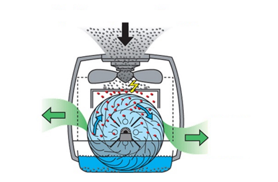 The most functional equipment that humidifies and purifies the air from pollution and unpleasant odors. It works by blowing water dust from a drum consisting of plates. The dry stream is forced by the fan and the dirt settles on the plates, after which it is washed into the pan during rotation.