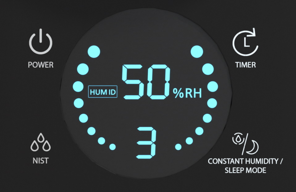 The indicator on the front panel shows the level of humidity. The value is adjusted by four preset programs or manually. With the intensive humidification function, the capacity increases to 0.4 l/h, and within an hour the freshness in the room is noticeably increased.