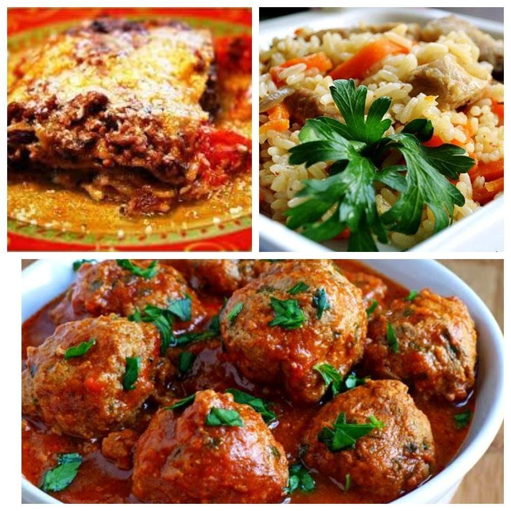 - pilaf - plus just meat, potatoes (languishing and roasting);