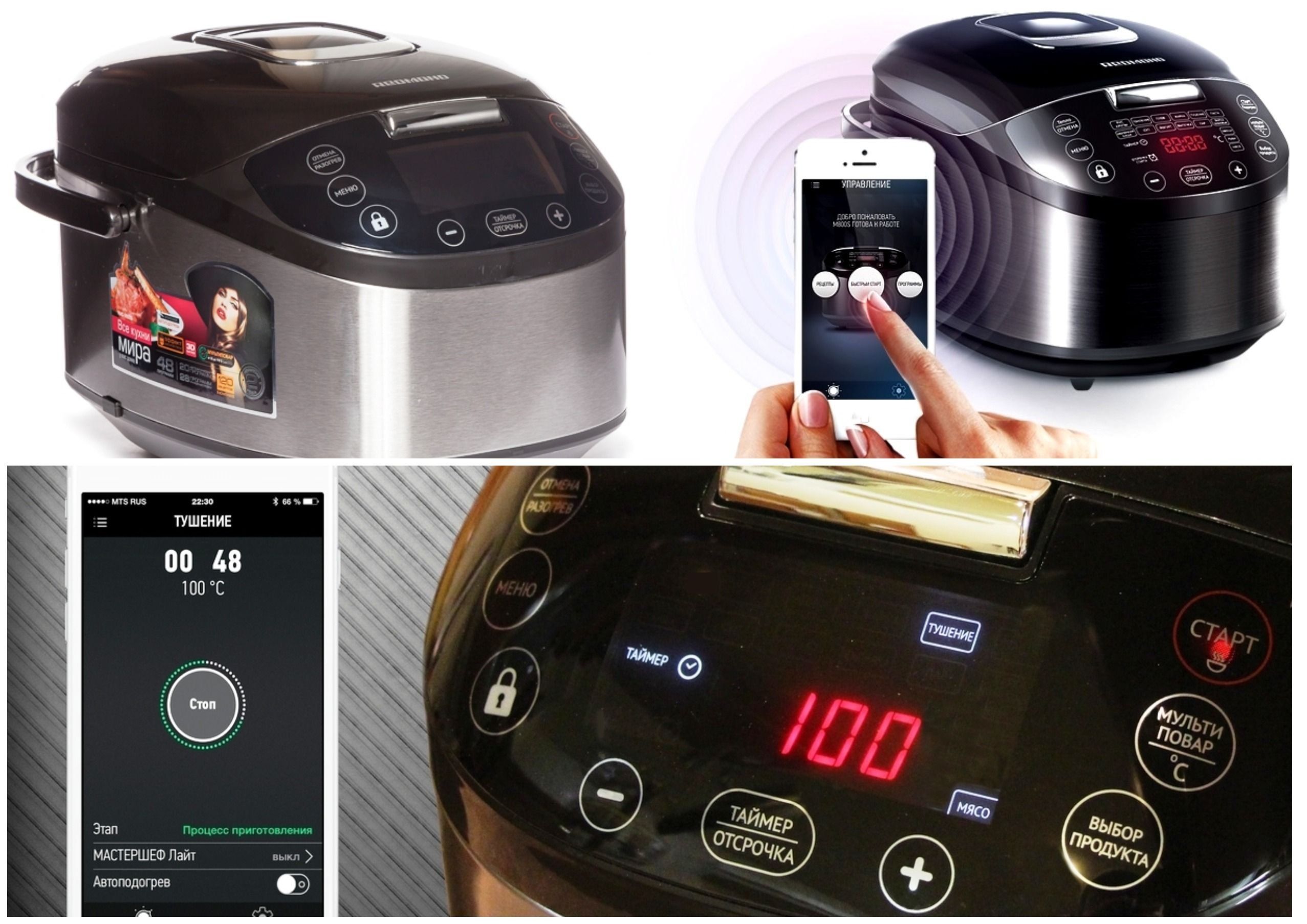 The best brand in the middle price segment is REDMOND and its model M800S, a smart multicooker, multifunctional, controlled from a mobile device. Of course, it is overall, it will require more space, but its capabilities compensate for this trifle.The device has 20 automatic programs, even more with manual settings (28 programs).