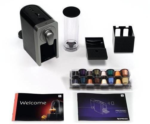 Included: instructions for use, a metal container (jug) for milk, a test strip to determine the hardness of water, 2 capsules cleaning + decalcification.
