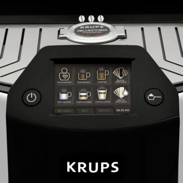 The new Krups Quattro Force bean grinding technology is an unforgettable taste, unimaginable froth and invigorating aroma of drinks.