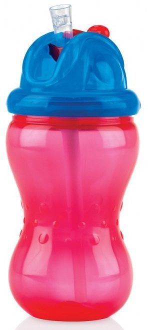 A drinking bowl with a straw is ideal for a child who is not even a year old. The tube almost reaches the bottom and "disappears" when closed. The cup was noticed by buyers due to its convenient shape. The kid can easily hold it with his hands without disturbing adults