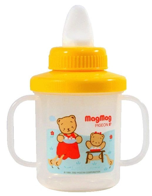 A drinking cup (not with one, but with two spouts) will help gradually wean the child from the bottle. One spout is made of soft silicone, and the second is more rigid.