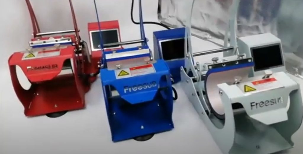 Vacuum sublimation heat press is used to print images on the surface of mugs, shot glasses, bottles, jars and plates.