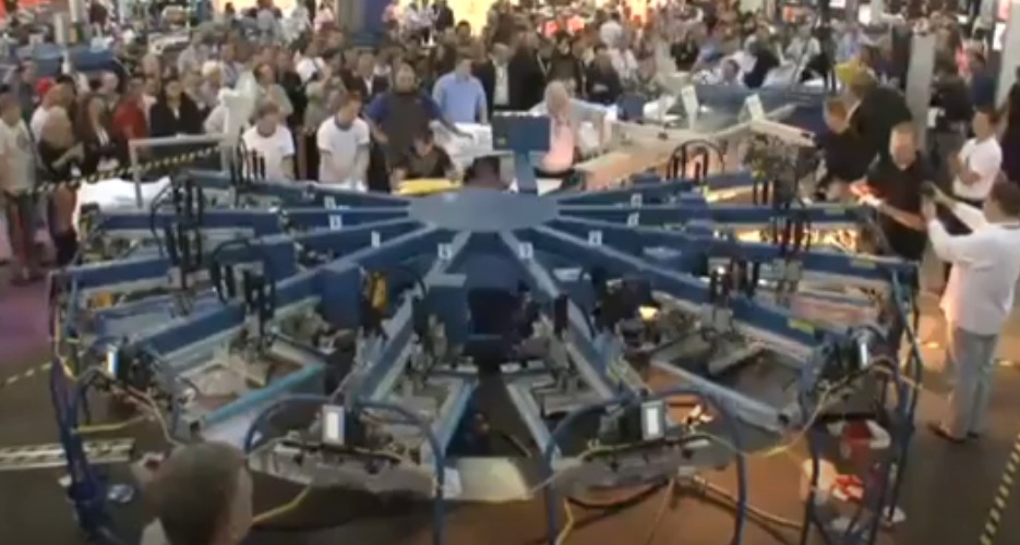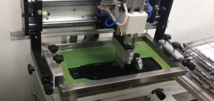 At the final stage, the image is directly printed through a stencil and paint is applied to the mesh by pressing. For small runs, manual machines are used, for large batches, automated, semi-automated units.