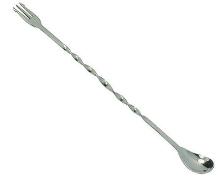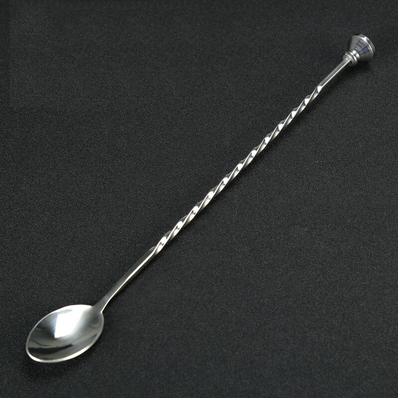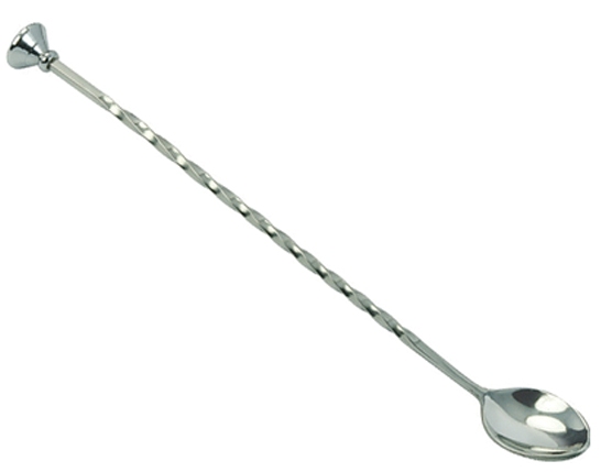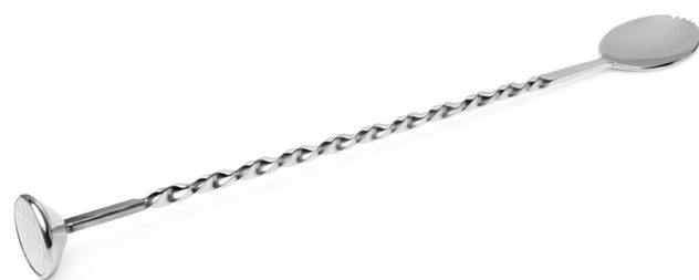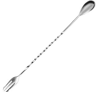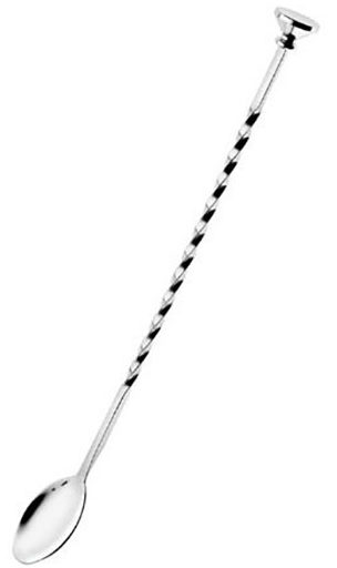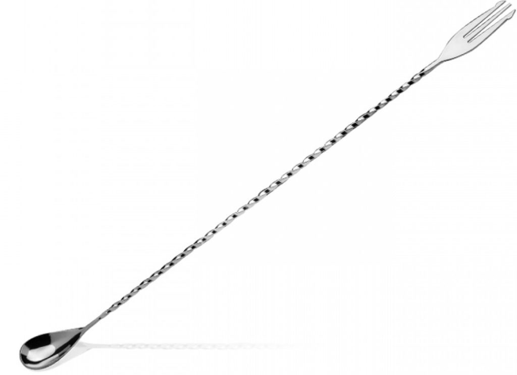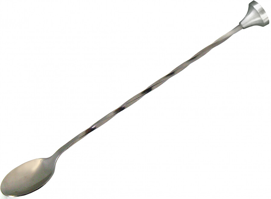 A bar spoon is a long-handled spoon used for making mixed drinks and cocktails. The handle of the product differs, except for the length, often in that it is twisted in the middle or completely along the entire length. Due to the fact that it is used in dishes of different heights, the handle of the product does not have standard sizes and can be from 15 to 50 cm. At the end of the handle, as a rule, an additional device is placed, for example, a pestle, a fork or a disk.