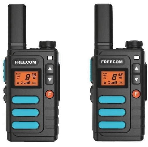 A set of two devices supporting the PMR format from one of the leaders in the production of communications equipment. Operates in the range 446.01-446.09 MHz. The maximum radius is up to 4 km. Power is supplied by three AAA batteries.