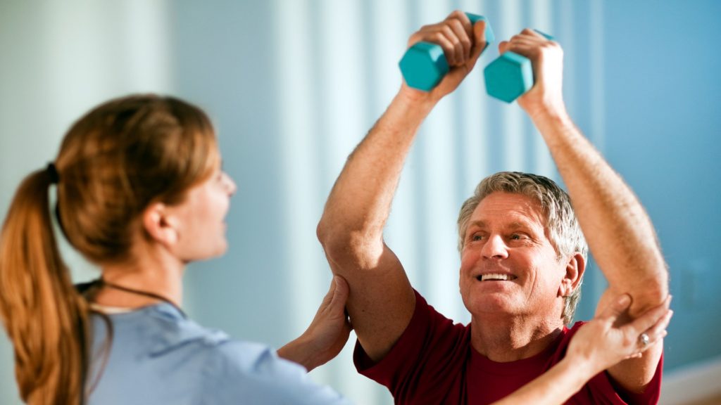 The therapy includes exercises on special equipment to develop various parts of the body, restore coordination of movements and physical strength.