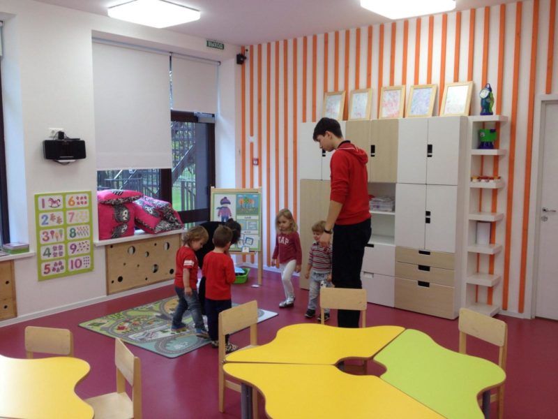 Children are accepted in 4 age groups, from 1.5 to 6 years. There are 10-12 children in each group. This makes it possible to engage with each child to the maximum. On the basis of the kindergarten there is a swimming pool, where specialists conduct classes with the kids "Gnomes". Swimming is a prevention of spinal curvature and strengthening of the bone skeleton, as well as hardening. Group lessons on the water help to learn how to swim and strengthen children's muscles. Children from one and a half to three years old visit the pool and yoga twice a week. From the age of 2.5, a speech therapy group was organized, and from the age of 3, the children are engaged in creativity every day, they learn English and the basics of mathematical calculation.