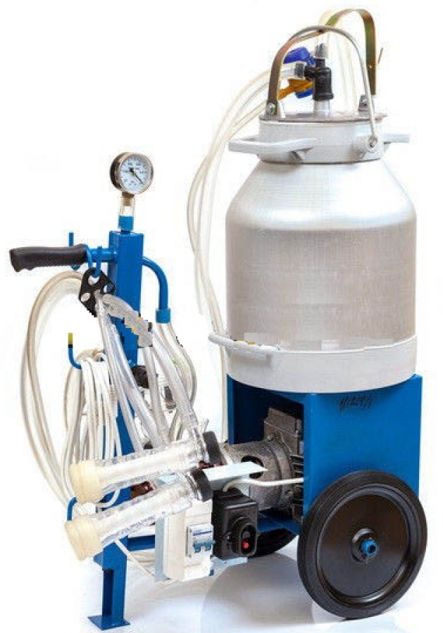 According to business executives, the advantages of this brand of devices are a dry-type electric motor that consumes standard 220 W and is ready for use in 1 minute. When a pressure of 50 kPa is reached, special "glasses" are attached to the udder of the animal and milking is performed. It takes place within 5 minutes. each individual. Through transparent hoses, milk enters a plastic can with a volume of 30 liters. Such a composition of the unit's components allows you to continuously monitor the beginning and end of the process without wasting time to control the filling level of the tank and the amount of product received.