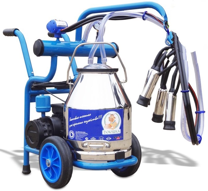 A lot of positive feedback was collected by the unit of this brand. It is used in small private farms with a small number of livestock. It is universal, as it is applicable for milking cows and goats. The high efficiency of the “Doyushki” 1C model is noted when taking milk from pregnant females (heifers), that is, those who have never given birth. But in cows with well-developed udders, type 1P will be the best option. For goat farming, 1KS would be a suitable species. The device of the presented brand is designed for the process of decanting one animal, which lasts for 5 minutes.