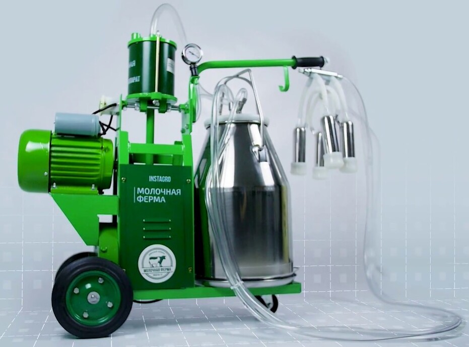 The manufacturer's products are applicable for the process of milking cows, especially heifers. The device collects milk from 1 animal within 8 minutes. The device is not bulky, but, at the same time, not maneuverable. The pressure in the vacuum system is reached in a short time and is equal to 47 kPa, which differs by several units from the standard value of 50 kPa. Pulsation, like the previous unit, is created by a piston pump and is 64 cycles per minute.