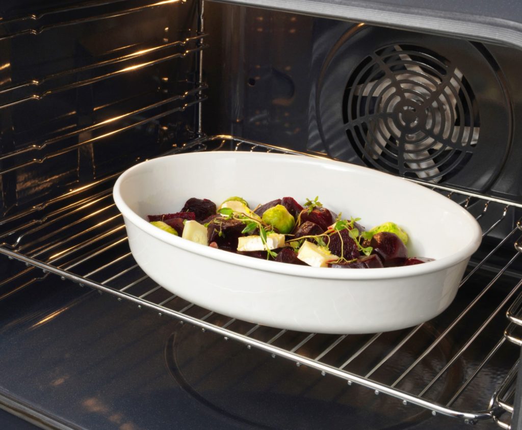 In electric models of ovens, there is a forced convection function, due to which hot air is evenly distributed inside the cabinet. Food will be cooked evenly, baked and fried in moderation. You will not need to constantly monitor the cooking process, you can save time and do other household chores.