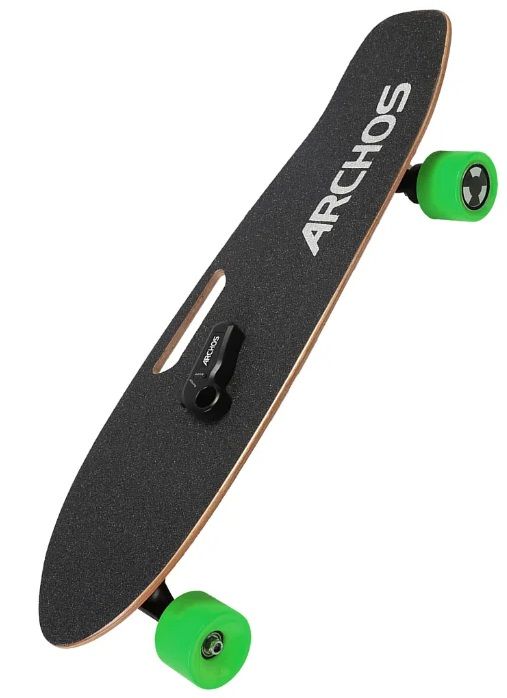 A popular electric skateboard model made of Canadian maple with a maximum acceleration speed of 23 km/h. A load of up to 100 kg is allowed. The gearbox is made on a belt.
