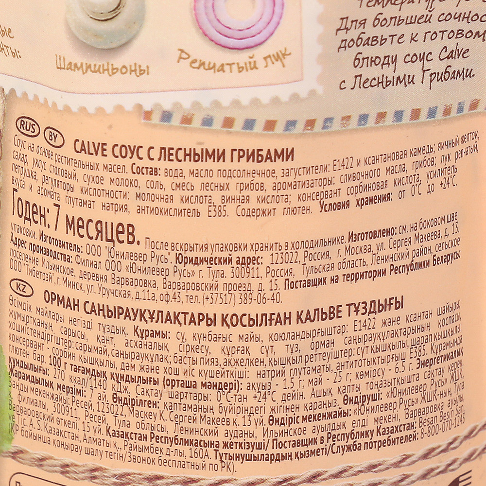 Calve does not use any of the mushroom flavors commonly found in the food industry. It contains real porcini mushrooms, champignons and boletus, the pieces of which are clearly visible in the thick sauce. Accordingly, the taste of the product only benefits from this: rich mushroom, complementing the creamy notes of the base.