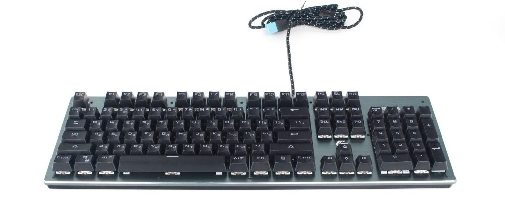 Plus a good build, soft keys and cable braid. There are few minuses - the selected backlight settings fly off after the computer is turned off, and the space bar produces an unpleasant metallic sound when pressed frequently. Well, the rubber on the legs can draw on the table (but again, if the tabletop is not made of mahogany, such a trifle can be forgiven).