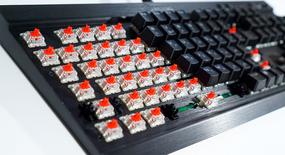 Of the features - Cherry MX Red key switches (linear, with high smoothness, reduce the load on the fingers), a removable USB cable.
