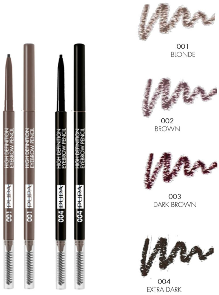 The brand's pencils are represented by mechanical devices in warm shades. Equipped with a thin and neat lead, which is applied more gently to the eyebrow area and makes it possible to draw the finest hairs. Provide natural and beautiful color. The firmness of their applied form is maintained throughout the day. The convenient brush located on a back side provides its high-quality application.