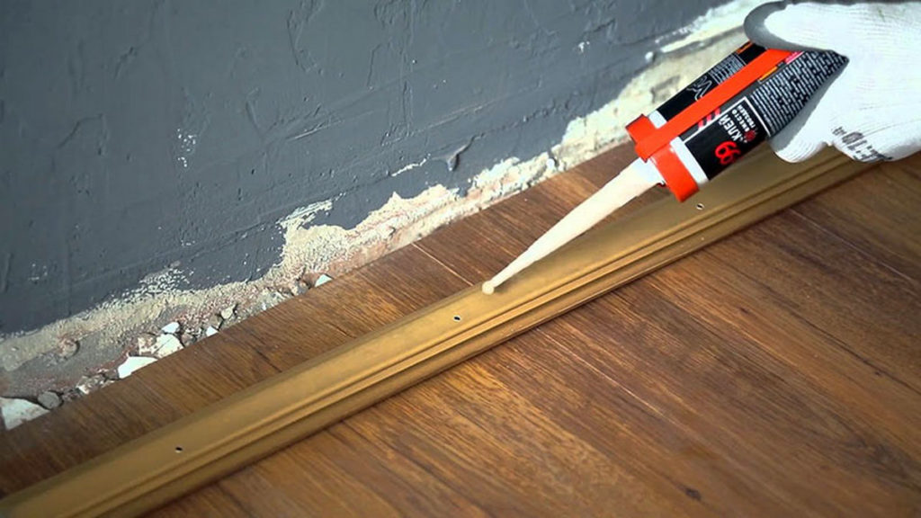 As mentioned above, there is practically no universal type of glue for skirting boards, and the use of each specific brand will depend on many factors. For example, polymer-based adhesives should only be used in well-ventilated areas, and the same Moment, due to its special viscosity, once it hits the surface, is very difficult to remove. In addition, if the substance is transparent, then unauthorized contamination is unlikely to be noticed the first time. In any case, for synthetic adhesives with similar qualities, it is better to use a gun.