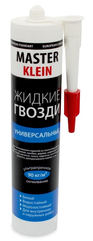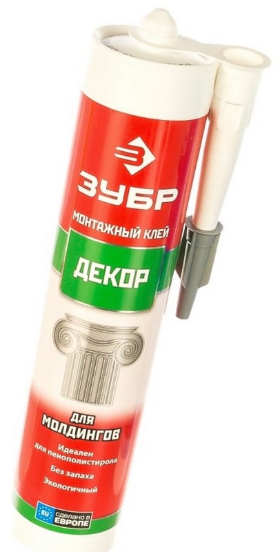 This domestic sample is directly intended for the installation of moldings on various surfaces, such as plastic, wood, brick and concrete, metal and ceramics. Gluing occurs quickly and reliably, docking structures, even in a decorative solution, are easy to install. Work can be carried out both inside and outside the premises. The composition is resistant to low temperatures. The container volume is 300 grams, the brand originates from Russia, the recommended price for retail chains is 270 rubles.