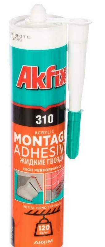 A universal composition from a Turkish manufacturer with enhanced adhesive properties. Works great with almost all materials - synthetic moldings, wooden skirting boards, polystyrene foam, ceramics, MDF and chipboard. The composition is based on acrylic, which means that there are no harsh odors during operation.The total volume of the container is 310 grams, the home of the brand is Turkey, the recommended price for stores is 260 rubles.