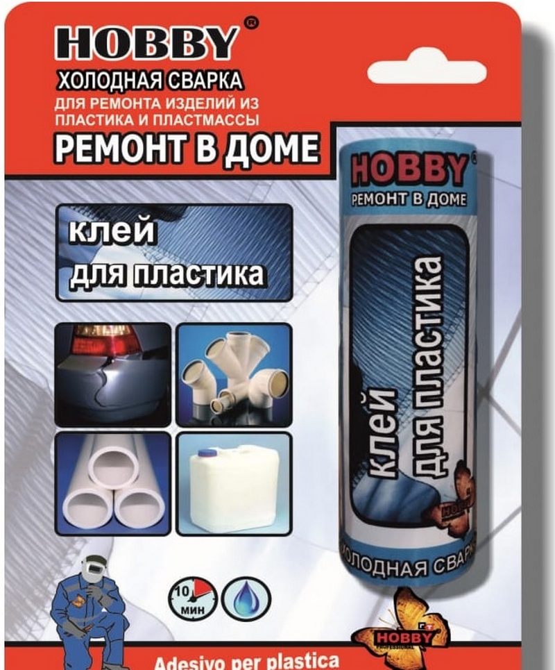 An excellent and high-quality option for solving small household tasks. Great for repairing plastic items. Able to provide almost instantaneous setting and can successfully resist the effects of water. The composition itself is a plastic bar, consisting of a hardener and an adhesive base. After mixing and kneading, a homogeneous mass is obtained, which is very convenient to apply. Works great for micro cracks. The mass of the supplied substance is 55 grams, the country of origin is Italy. The established cost for store chains is 290 rubles.