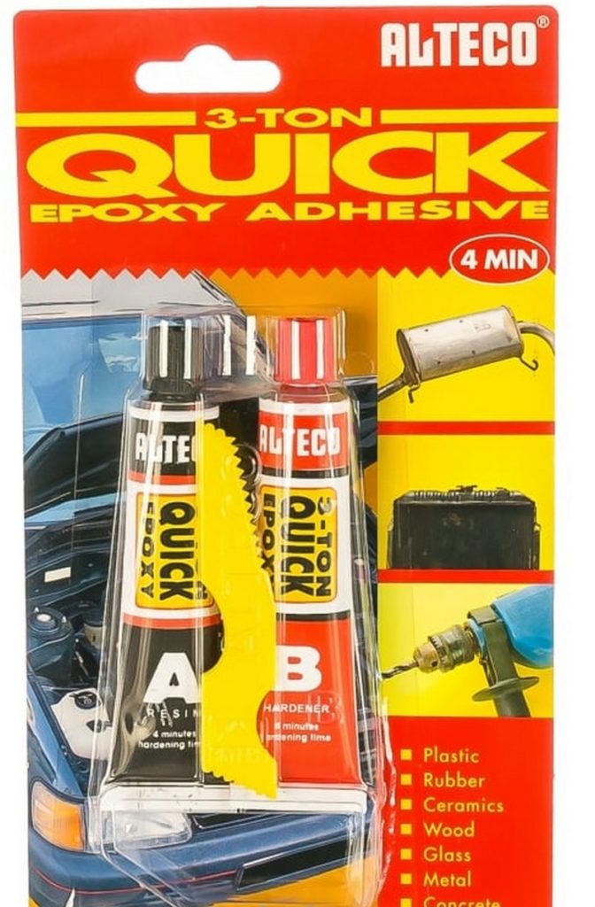 This type of welding is characterized by increased adhesion. Able to work on most materials: stone (natural and artificial), wood, glass and ceramics, rubber and plastic. The composition is resistant to acid environments, low combustible, slightly flammable. Adhesion occurs within 3-5 minutes. It has a two-component composition and requires mixing. Supplied in large tubes with a total capacity of 90 grams. The country of origin is China. The established price for store chains is 190 rubles.