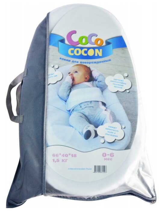 The cocoon is suitable for babies up to 8-10 months. Complete set: cocoon, carrying bag, blanket, gift from the loombee brand. Filling: hypoallergenic volumetric. Does not require additional care, it is allowed to wash in the machine, on a gentle cycle. All products comply with international standards and are of high quality. Price: 2980 rubles.
