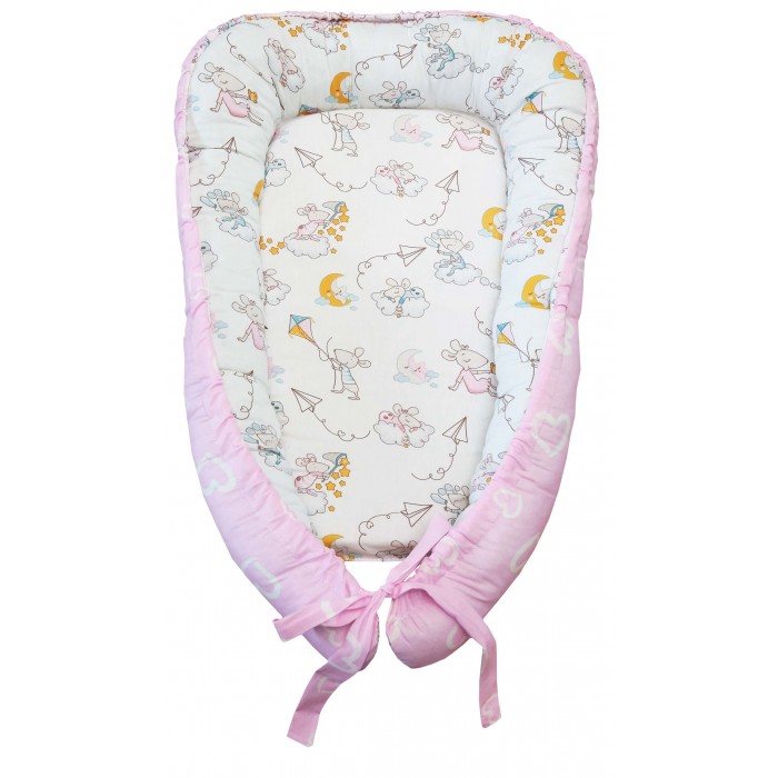 Bright sleep positioner made of natural 100% cotton. It can easily fit in your bag and you can take it with you for a walk. Base filler: faberplast and thermofiber. It is convenient to change and swaddle the child in it both at home and on the street. Double-sided, you can change the color by flipping the cover. Dimensions: 70x50 cm. Price: 934 rubles.