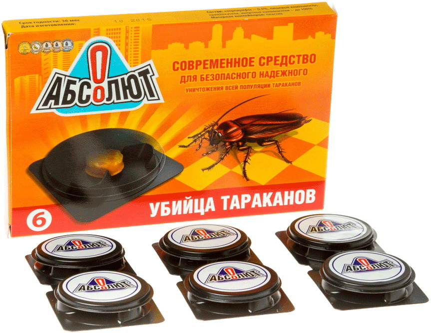 The NPO Garant model of domestic production is a bait trap using a potent poison that effectively destroys cockroaches. It has the form of small container disks in the amount of 6 pieces, in the inside of which a paste-like agent is placed, including nutrients with an attractive smell for pests. It spreads to a distance of up to 1 m. Insects that eat it are poisoned after 8 hours. When using this device, the domino principle is applied.Poisoned cockroaches, moving among comrades, transmit poison to them, and dying themselves are poisonous food for other tribesmen. In this way, the effectiveness of the use of the Absolut trap-bait is completely justified.
