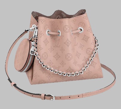 An original petite bucket bag crafted from grained leather with a perforated Monogram pattern. The interior has a branded microfiber textile lining and the pouch closes with a leather drawstring. In addition to the bag, a round coin purse is fastened, which is not only functional, but also looks stylish. As for carrying, there is a chain handle made of metal with leather trim and a leather strap, adjustable in length, removable.All metal fittings are in silver.