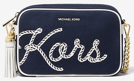 A fabric version of the organizer, the design of which can be described as "cruise or beach chic". It harmoniously combines deep blue color, rope print and gold fittings. As for the internal space - everything is standard here for such models - one department, closed with a zipper, inside there are additional pockets.