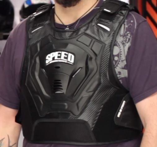 Features: Designed for motocross and enduro, level of protection is high (according to a range of EN standards; provided with shock-absorbing layers, movable plates, external panels made of shock-absorbing materials and strong chest protectors), good freedom of movement (allows you to take a comfortable riding position), comfort when dressing (comfortable size adjustment system using belts on the lower back, adjustable forearms, as well as a stretch mesh interior trim, the back is attached separately), a modern ventilation system (the use of perforated panels and a reduced contact area).
